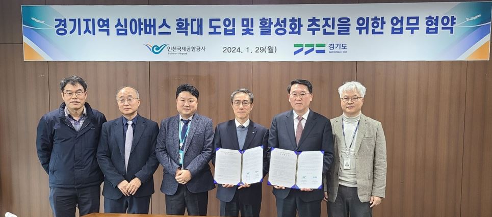 경기도와 인천국제공항공사(이하 공항공사)는 29일 공항공사에서 이런 내용을 담은 ‘경기 심야버스 확대 및 활성화 업무협약’을 체결했다.