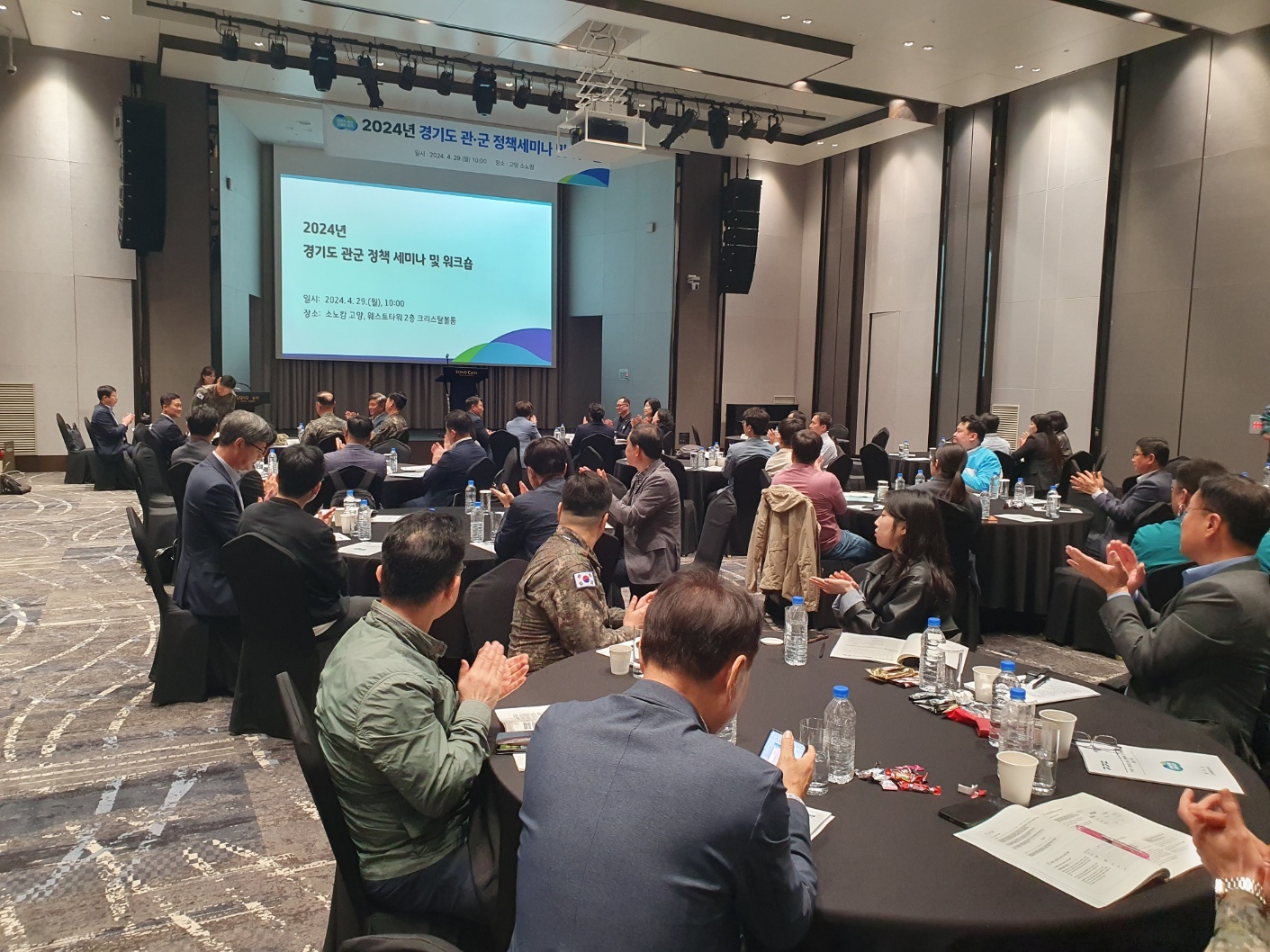 경기도는 29일 고양 소노캄에서 ‘2024 관군 정책세미나 및 워크숍’을 열고 이 같은 내용을 논의했다. 워크숍에는 경기도의회 의원들과 경기도 및 시군 관군 협력 관련 공무원과 군부대 관계자 등 80여 명이 참석했다.